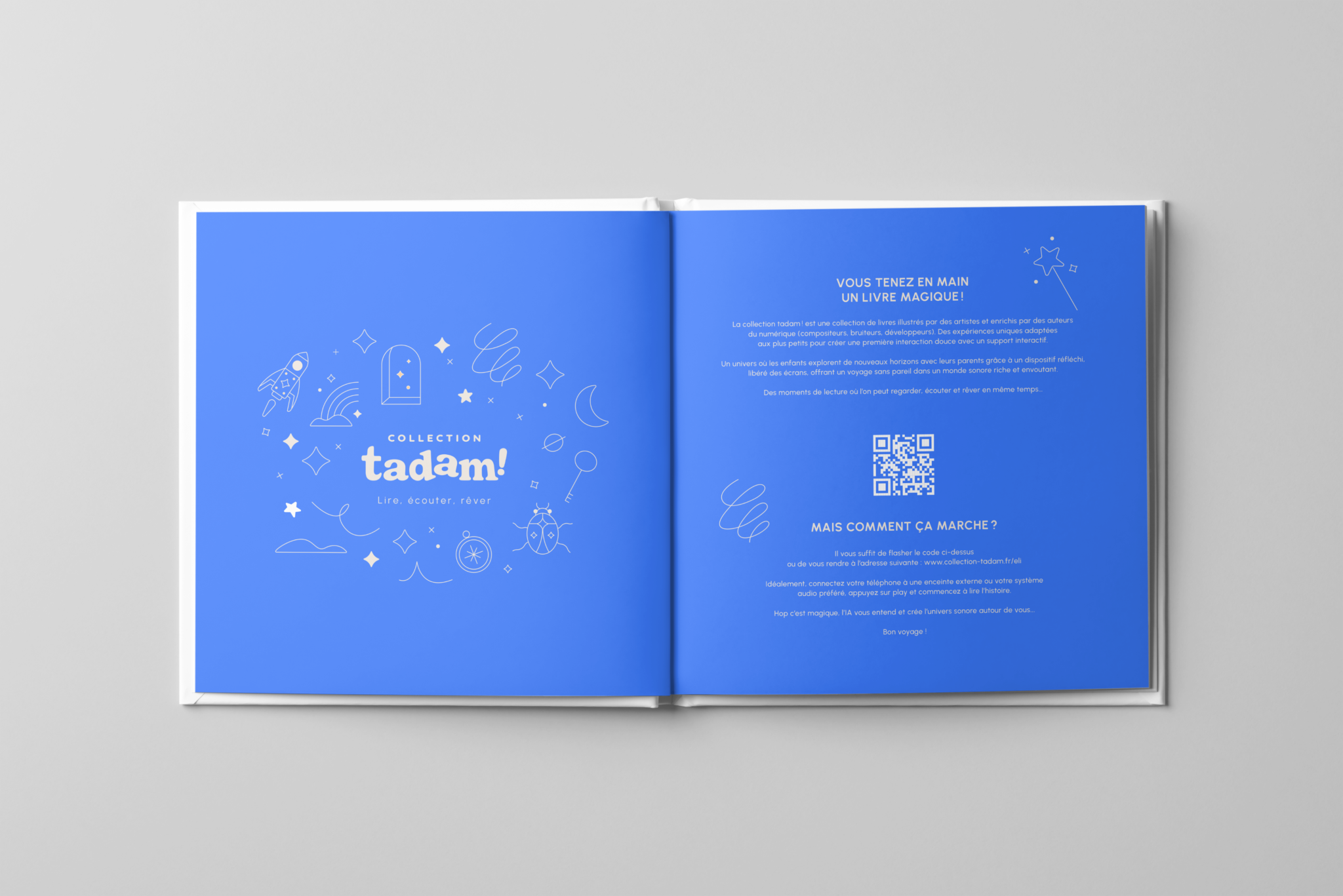 La Collection Tadam! est née de notre désir de repousser les frontières du storytelling en intégrant l’intelligence artificielle à l’univers des livres pour enfants. En combinant le charme intemporel des livres illustrés avec les possibilités offertes par l’IA, nous avons créé une expérience de lecture immersive et interactive, où chaque page devient une aventure sensorielle.